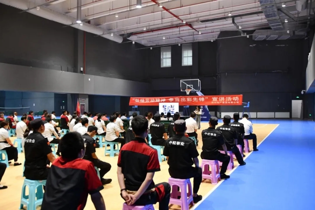宣講團第一組赴鄭地奧體公司在奧體中心綜合訓練館展開宣講,鄭地奧體、中航物業(yè)保潔及安保等一線員工共100余人參加了此次宣講活動。來自黨群黨支部王曉婕、人力資源黨支部馬遠俊、黃河兩岸公司黨支部吳林熹、都市開發(fā)公司黨支部馮靜、投資管理公司黨支部范瑩,從學習貫徹習近平總書記重要回信精神、“講好黃河故事”、“ 絲路精神”和共筑中國夢等方面,通過身邊人身邊事,以小見大,講述了一個個平凡而偉大的勞動者的故事,號召全體黨員同志進一步樹立勞動觀念、弘揚勞動精神,爭做出彩鄭地人,以一流的業(yè)績和實際行動擔當重任,為集團高質量發(fā)展貢獻力量。
