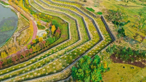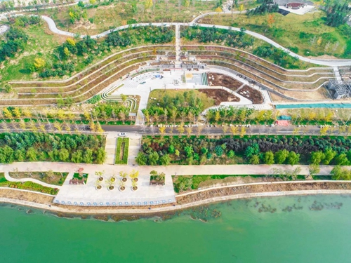 賈魯河生態(tài)修復(fù)工程綠化種植共281個(gè)品種,種植面積為1023.98公頃、園路187千米、廣場380個(gè)。