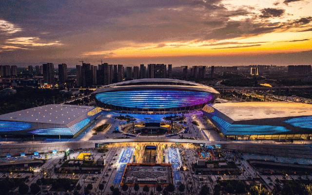 “星空夜市位于奧體中心的樞紐位置——東下沉廣場,北側(cè)緊鄰鄭州唯一一個國際標(biāo)準(zhǔn)的冰上運動中心。