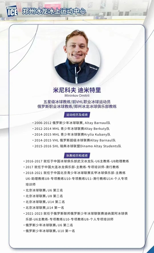 鄭州奧體冰龍冰上運動中心是一座現(xiàn)代化冰上訓練綜合場館。新年伊始,冰龍冰上運動中心迎來國際知名冰球教練米尼科夫·迪米特里,國家E級教練員趙鐵北、馬騰飛入駐,將通過豐富的執(zhí)教經(jīng)驗和專業(yè)知識,為河南冰雪運動注入鮮活動力!