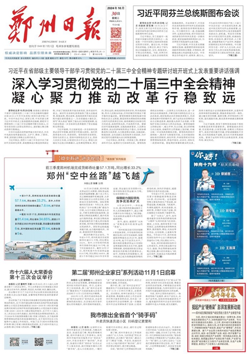 黨的二十屆三中全會提出,高質(zhì)量發(fā)展是全面建設社會主義現(xiàn)代化國家的首要任務。當前,鄭州正錨定高質(zhì)量發(fā)展這一首要任務,因地制宜發(fā)展新質(zhì)生產(chǎn)力,加快構建現(xiàn)代化產(chǎn)業(yè)體系。