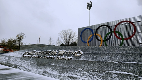 奧體中心的場(chǎng)館在白雪映襯下