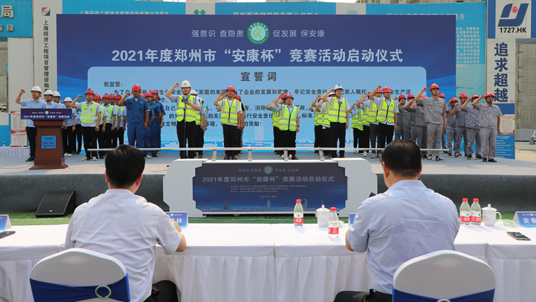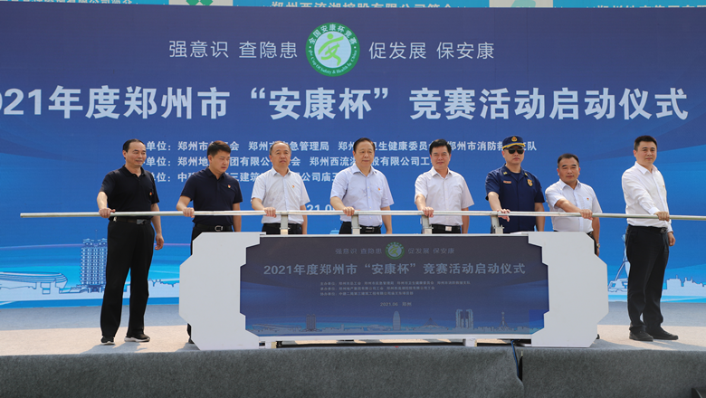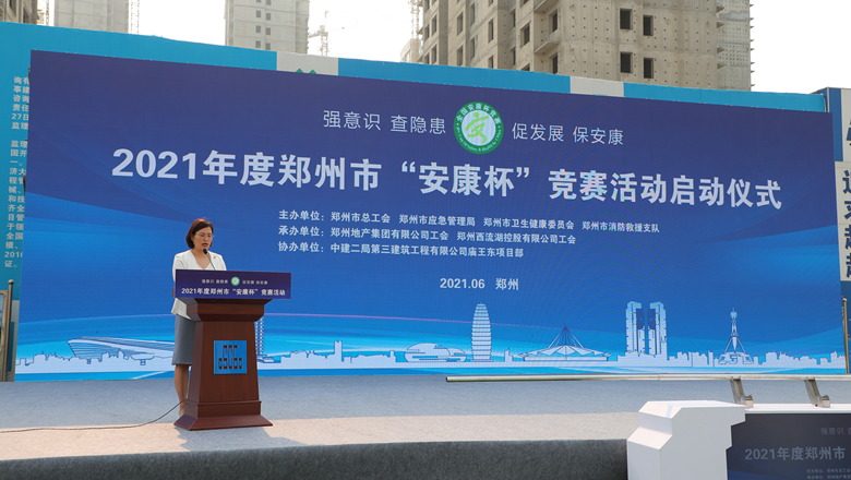 為深入貫徹落實習(xí)近平總書記有關(guān)加強安全生產(chǎn)工作的部署和要求,進(jìn)一步強化各級各部門、各企業(yè)主體的安全責(zé)任意識,確保我市安全生產(chǎn)形勢持續(xù)好轉(zhuǎn),職工安全健康不斷鞏固。6月11日上午,由鄭州市總工會、鄭州市應(yīng)急管理局、鄭州市衛(wèi)生健康委員會及鄭州市消防救援支隊主辦,鄭州地產(chǎn)集團(tuán)工會、鄭州西流湖控股有限公司工會承辦的鄭州市2021年“安康杯”競賽啟動儀式在中原新區(qū)廟王東安置區(qū)項目成功舉行。鄭州市相關(guān)組織部門、市總工會成員單位、地產(chǎn)集團(tuán)、西流湖公司、各參建單位共200余人參加啟動儀式。鄭州市一級巡視員,市總工會黨組書記、主席趙新中、鄭州市衛(wèi)生健康委員會黨組成員、二級調(diào)研員楊德林、鄭州市應(yīng)急管理局三級調(diào)研員安春茂、鄭州市消防救援支隊副支隊長、滅火救援指揮部部長李隆、鄭州市總工會副主席宋少丹、鄭州地產(chǎn)集團(tuán)有限公司監(jiān)事會主席、工會主席李靜波、鄭州地產(chǎn)集團(tuán)西流湖公司黨支部書記、董事長、總經(jīng)理 吉獻(xiàn)亮,中建二局第三建筑工程有限公司西北分公司黨委副書記、執(zhí)行總經(jīng)理趙海軍出席儀式。啟動儀式由市總工會勞動和經(jīng)濟(jì)部部長宋慧主持。