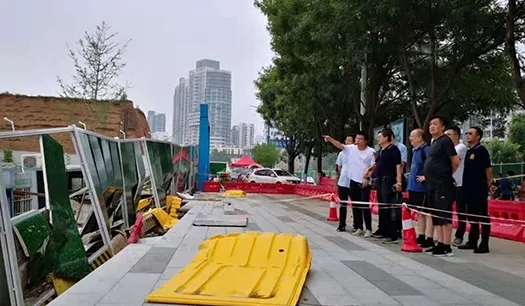 汛情緊急,快速應(yīng)對力保平安。公司黨支部書記、執(zhí)行董事、總經(jīng)理趙佳佳對于防汛工作作出工作部署,工程管理部即時啟動24小時項目值守,扎實做好暴雨防御、隱患排查、雨水倒灌、排水等各項工作,全力保障工程安全。7月22日,公司總經(jīng)理趙佳佳、副總經(jīng)理郭燦帶隊在健康城項目所有標段進行災(zāi)后安全隱患巡查。